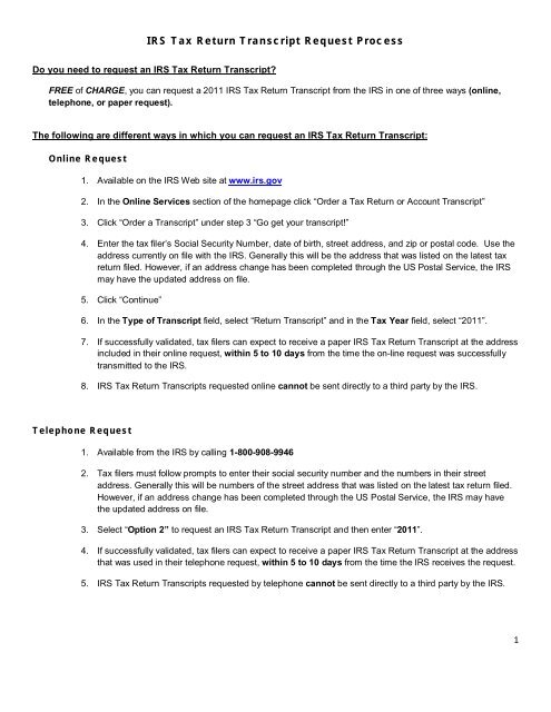 How To Request A 2011 Irs Tax Return Transcript