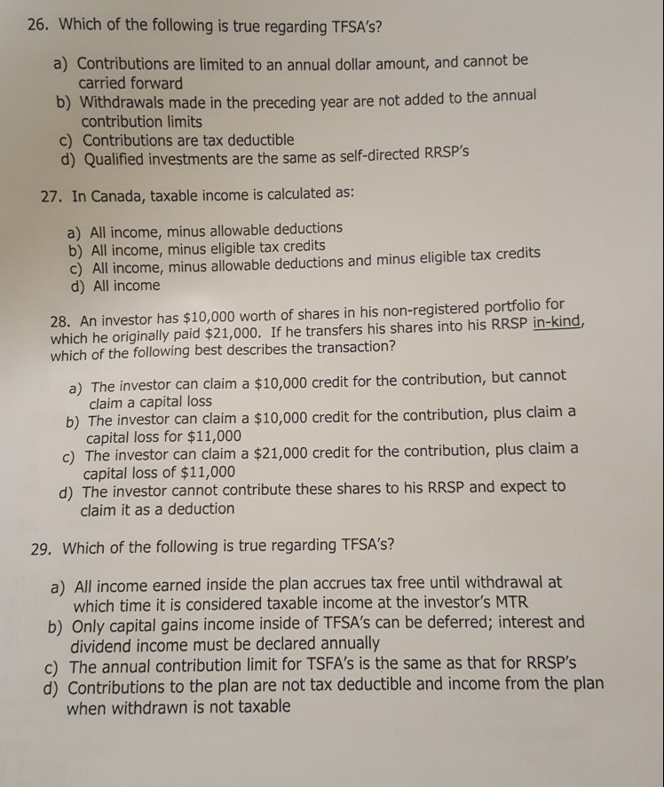Solved 26 Which Of The Following Is True Regarding Tfsa