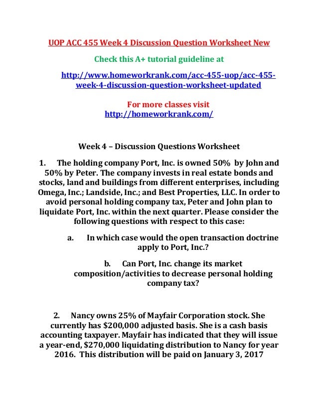 Uop Acc 455 Week 4 Discussion Question Worksheet New