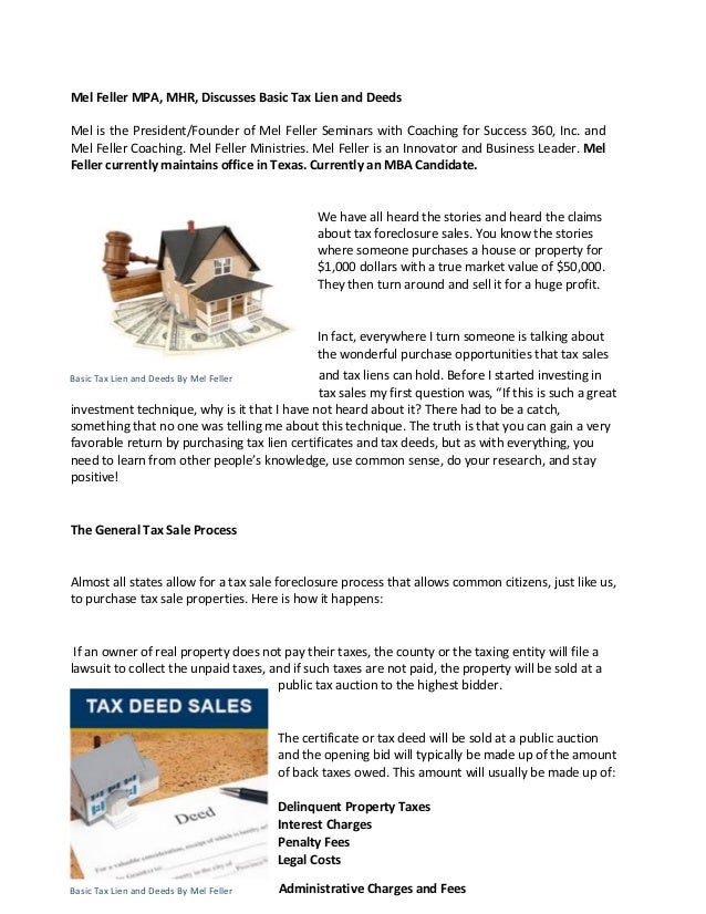 Mel Feller Mpa Mhr Discusses Basic Tax Lien And Deeds